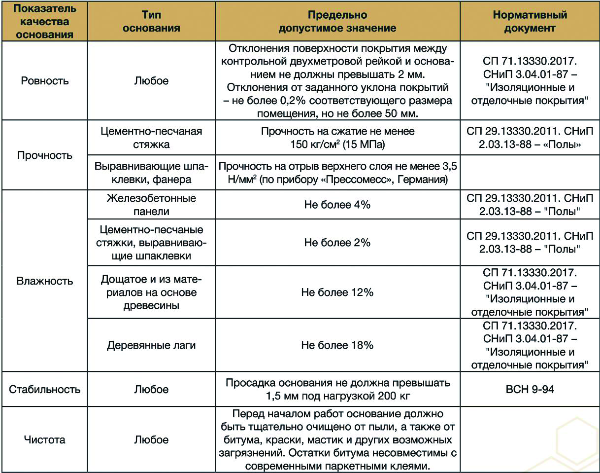 - Деревянные черновые полы должны быть сухими, влажность не должна превышать 12% и оставаться сухими круглый год