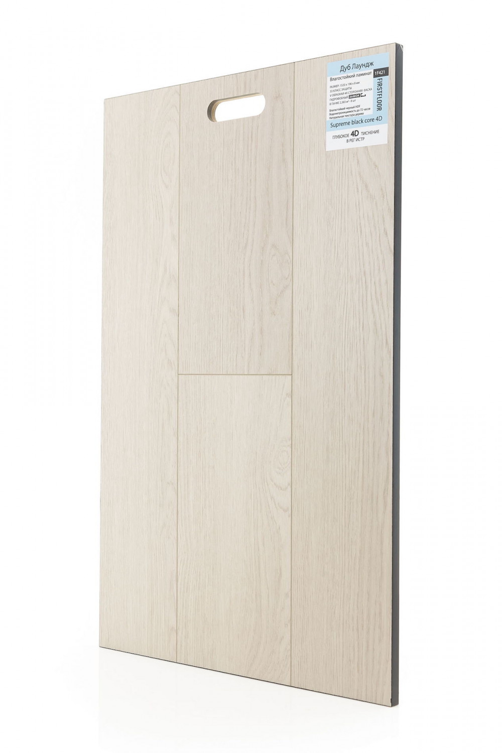 В ламинате Firstfloor тиснение выполнено с высокой точностью, благодаря чему покрытие выглядит максимально естественно и глубоко. Свет по-разному играет на поверхности, подчёркивая объём, а тактильные ощущения создают эффект настоящей деревянной доски.