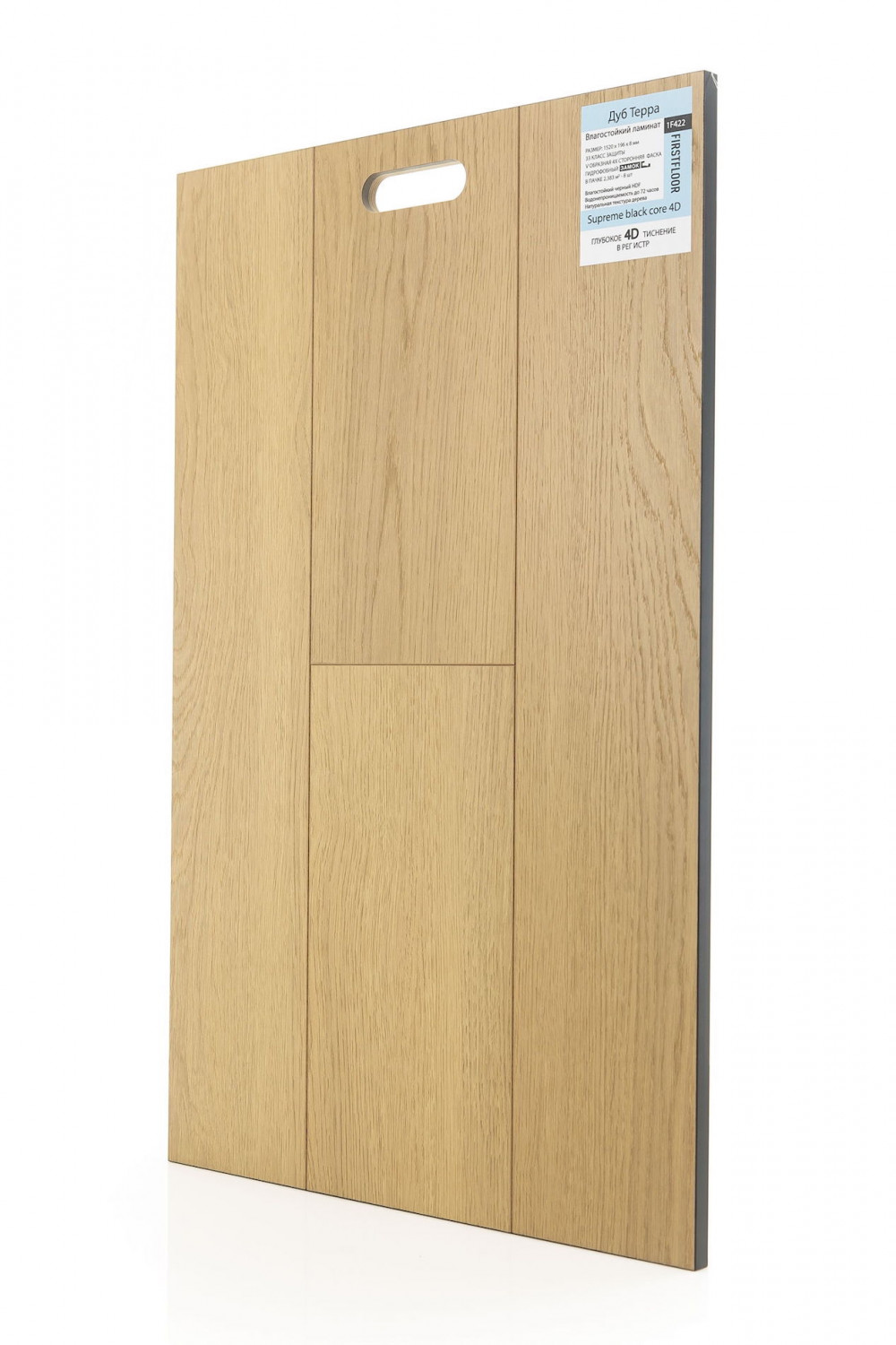 В ламинате Firstfloor тиснение выполнено с высокой точностью, благодаря чему покрытие выглядит максимально естественно и глубоко. Свет по-разному играет на поверхности, подчёркивая объём, а тактильные ощущения создают эффект настоящей деревянной доски.