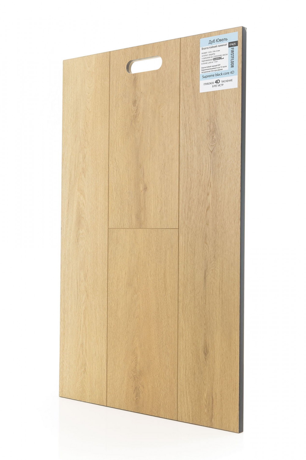 В ламинате Firstfloor тиснение выполнено с высокой точностью, благодаря чему покрытие выглядит максимально естественно и глубоко. Свет по-разному играет на поверхности, подчёркивая объём, а тактильные ощущения создают эффект настоящей деревянной доски.