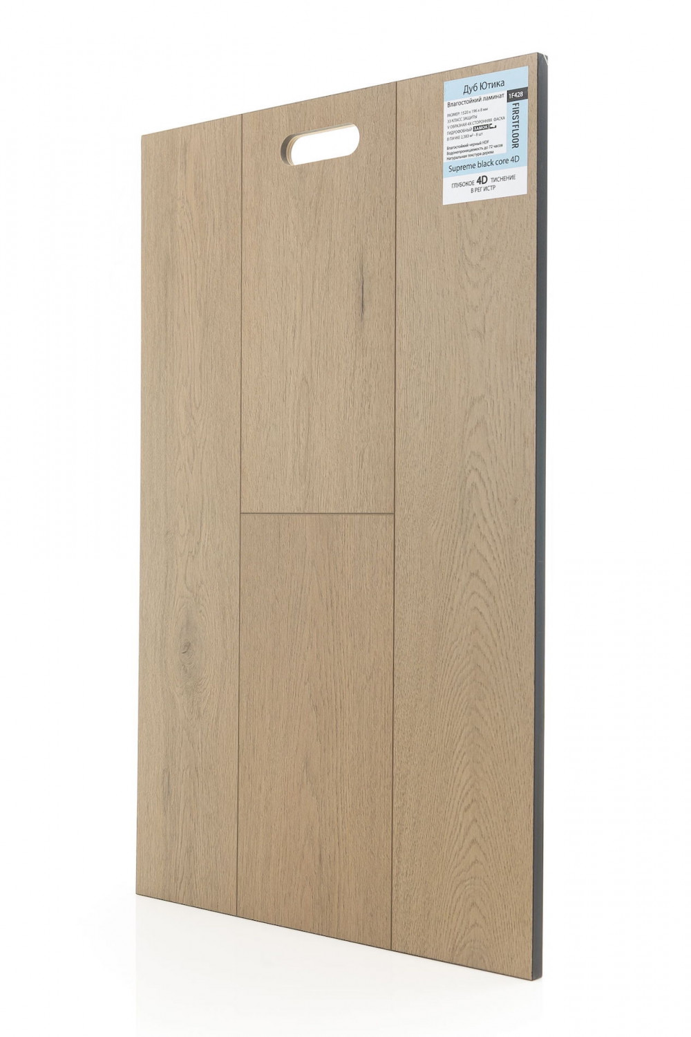 В ламинате Firstfloor тиснение выполнено с высокой точностью, благодаря чему покрытие выглядит максимально естественно и глубоко. Свет по-разному играет на поверхности, подчёркивая объём, а тактильные ощущения создают эффект настоящей деревянной доски.