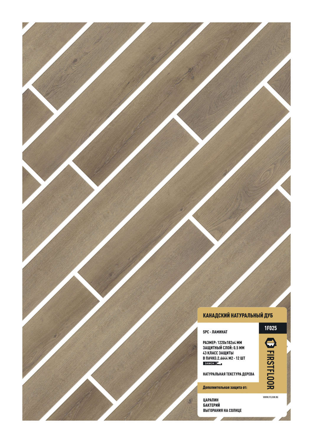Для максимального соответствия деревянному покрытию, каждая плашка окрашивается в тон с цветом фаски. SPC-ламинат Firstfloor может использоваться с подогреваемыми полами в стяжке. Наши напольные покрытия подходят для широкого спектра помещений, включая кухню, ванную и туалет, благодаря их 100% водонепроницаемости.