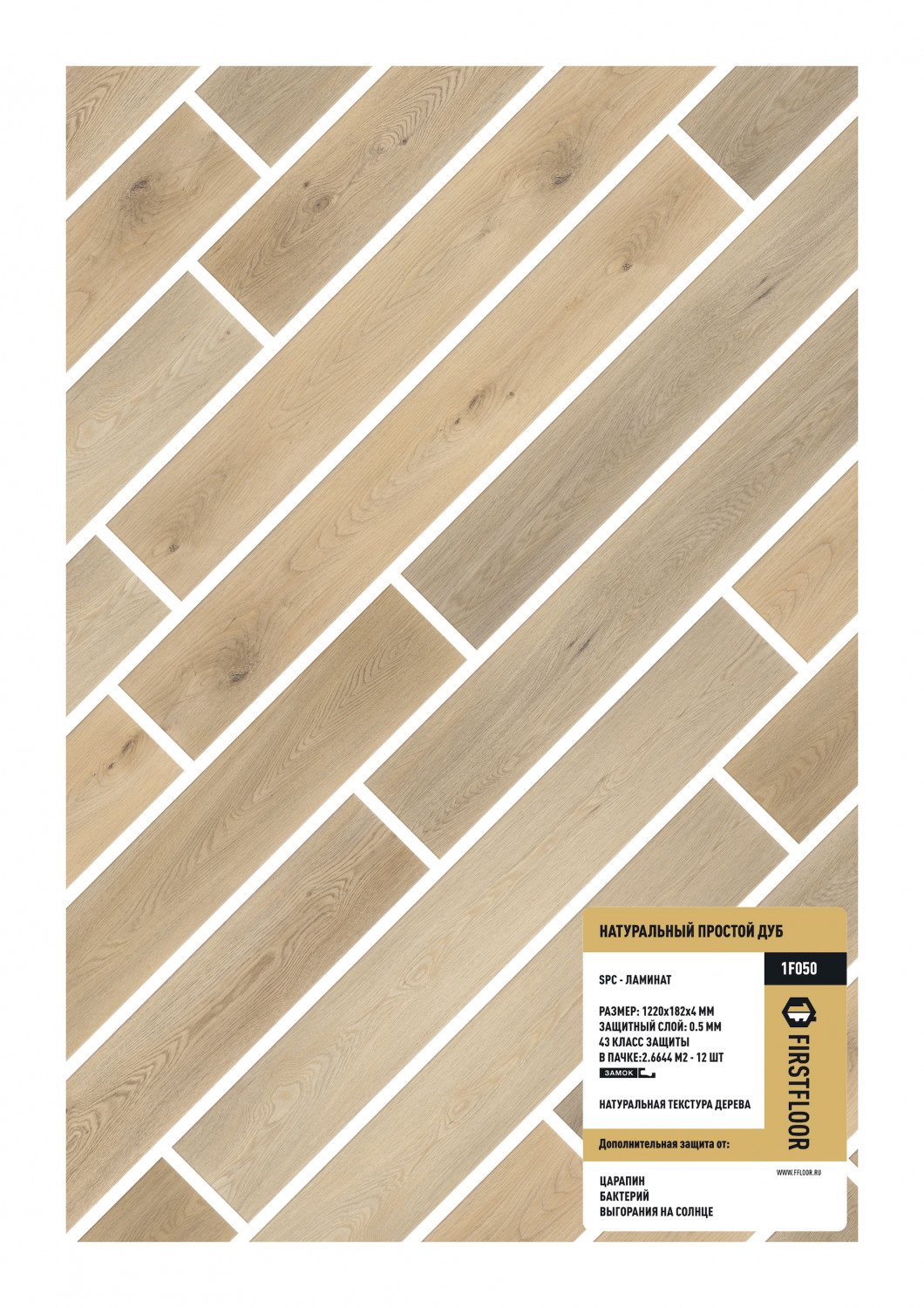 Для максимального соответствия деревянному покрытию, каждая плашка окрашивается в тон с цветом фаски. SPC-ламинат Firstfloor может использоваться с подогреваемыми полами в стяжке. Наши напольные покрытия подходят для широкого спектра помещений, включая кухню, ванную и туалет, благодаря их 100% водонепроницаемости.