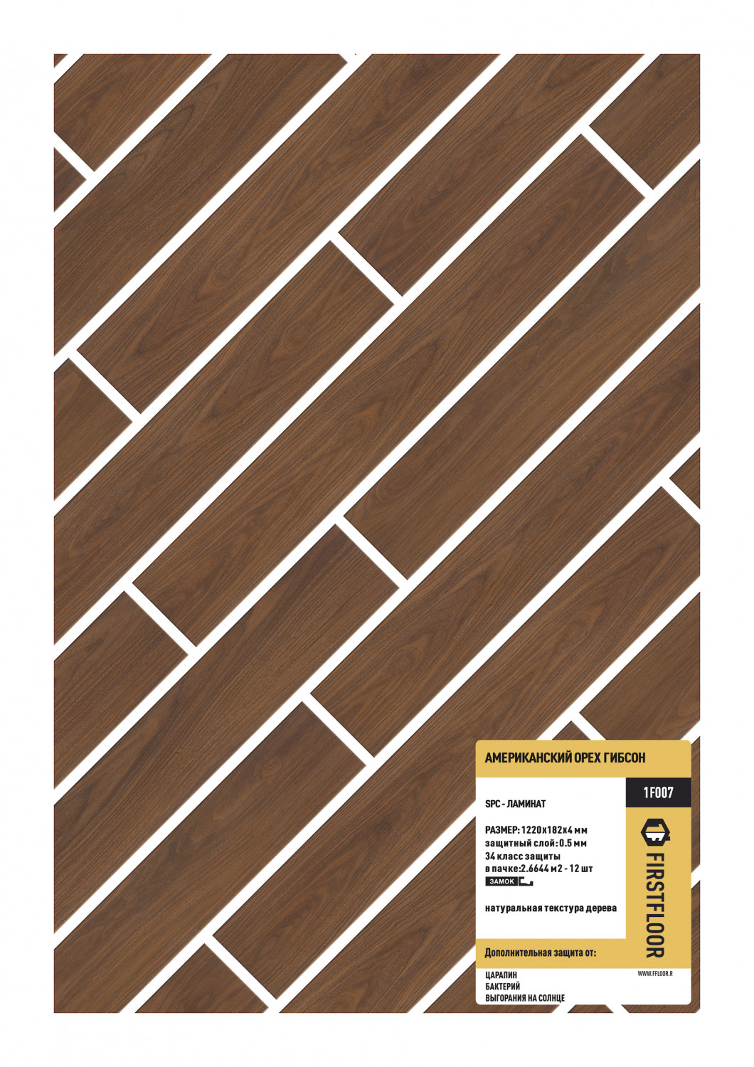 Для максимального соответствия деревянному покрытию, каждая плашка окрашивается в тон с цветом фаски. SPC-ламинат Firstfloor может использоваться с подогреваемыми полами в стяжке. Наши напольные покрытия подходят для широкого спектра помещений, включая кухню, ванную и туалет, благодаря их 100% водонепроницаемости.
