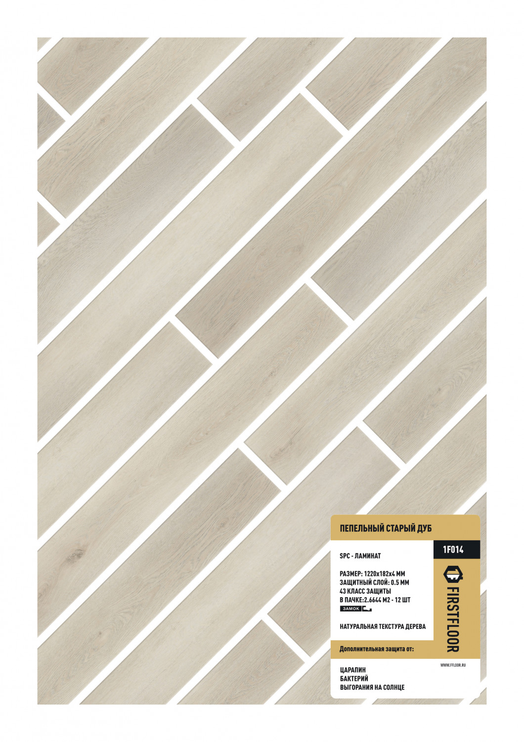 Для максимального соответствия деревянному покрытию, каждая плашка окрашивается в тон с цветом фаски. SPC-ламинат Firstfloor может использоваться с подогреваемыми полами в стяжке. Наши напольные покрытия подходят для широкого спектра помещений, включая кухню, ванную и туалет, благодаря их 100% водонепроницаемости.