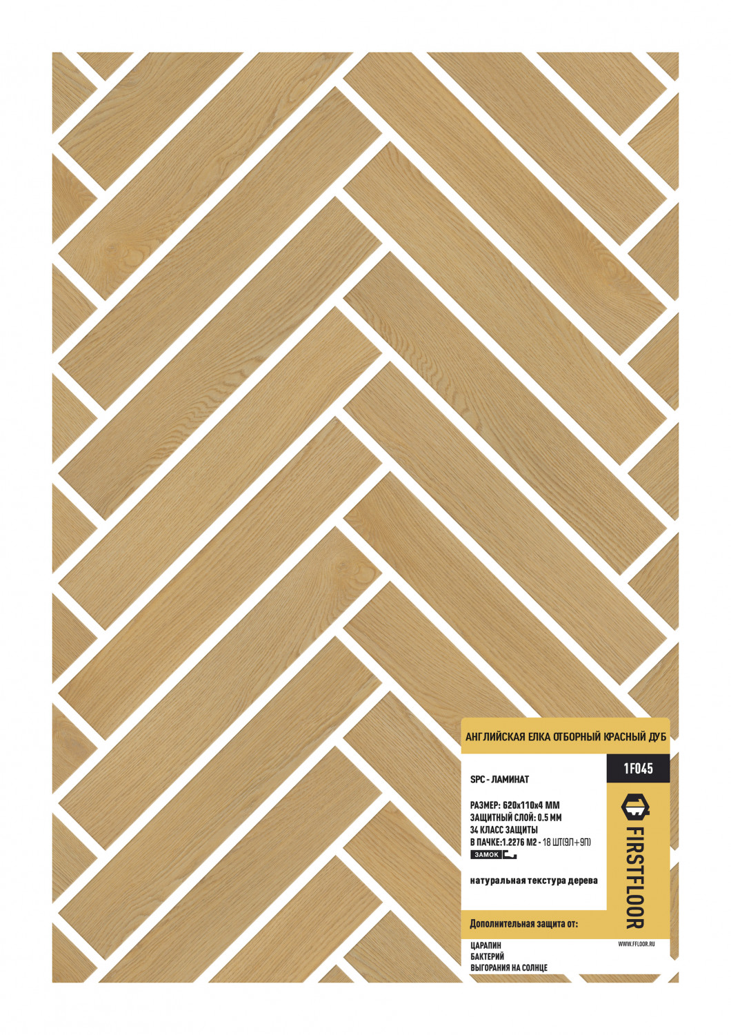 Для максимального соответствия деревянному покрытию, каждая плашка окрашивается в тон с цветом фаски. SPC-ламинат Firstfloor может использоваться с подогреваемыми полами в стяжке. Наши напольные покрытия подходят для широкого спектра помещений, включая кухню, ванную и туалет, благодаря их 100% водонепроницаемости.